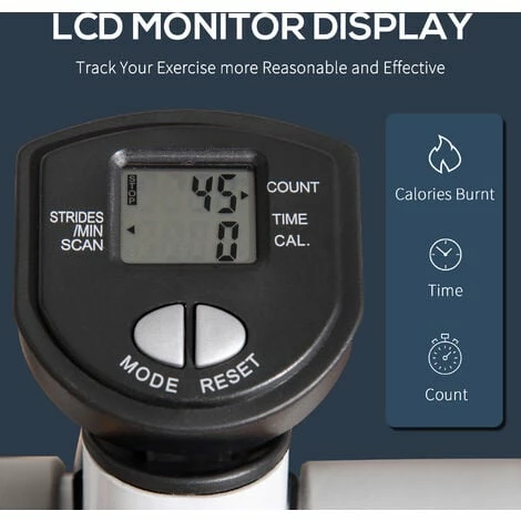 Tone your glutes and thighs with this HOMCOM stepper. Build with an adjustable handlebar can offers you a full body workout, the stepping pedals works your calves, buttocks, thighs and hips. It includes non-slip foot pedals, and foam handlebars for extra stability and comfort, LCD monitor screen to help keep track of time, calories burned and number of steps. Enjoy a fun and easy fitness workout at home or office!