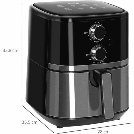 Do you want to enjoy your favorite fried foods but want to switch to a healthier lifestyle? HOMCOM has a compact air fryer made just for you. Enjoy foods for breakfast, lunch and dinner with air fryer, bake, broil and roast option. Thanks to temperature adjustment and timer function, your various cooking needed like French fries and steaks will be satisfied. 4.5 liter capacity suits for whole family of 4-5 people. Don’t give up your favorite foods with this HOMCOM air fryers for home use.