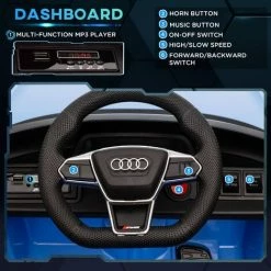 Thanks to this Audi licenced HOMCOM 12v ride on, kids will cruise in style with two speed options. The LED lights, steering wheel and horn provide a realistic experience when cruising, whilst their favourite songs will play through the USB or TF card slot. Parents can join the fun, using the remote control to navigate the ride-on, which has three speed options. Seatbelt keeps children properly secure, whilst the wide wheels and shock-absorption keeps the ride safe and smooth.