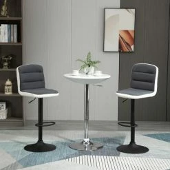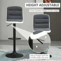 Accent your kitchen counter or seat a guest with these kitchen stools with backs. The mid-size back and footrest provides high seating comfort, while the seat height is adjustable to suit different statures. PU leather and linen-touch polyester fabric mix add textual interest to the adjustable stool.