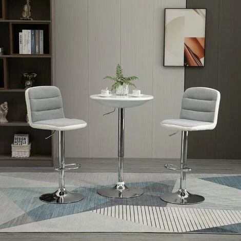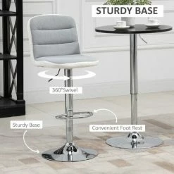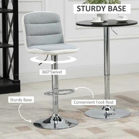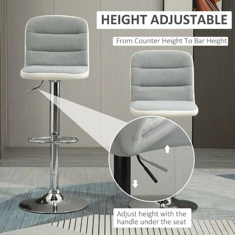 Accent your kitchen counter or seat a guest with these kitchen stools with backs. The mid-size back and footrest provides high seating comfort, while the seat height is adjustable to suit different statures. PU leather and linen-touch polyester fabric mix add textual interest to the adjustable stool.