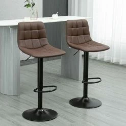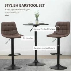 Sit with company, in style: these kitchen stools from HOMCOM. The padded seats and straight backs provide comfort and support. Comes with a steel frame, this adjustable stool has a strong and supportive structure, fitted with a bottom bar to rest legs. The rounded base keeps the bar stool weighted. Adjustable height design to set to the level most suitable for you.