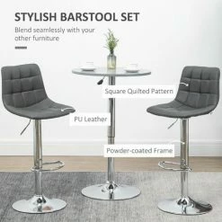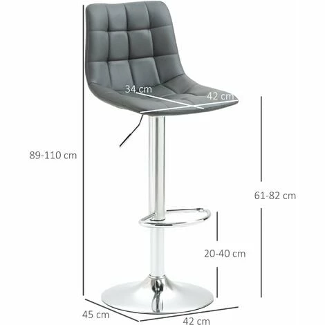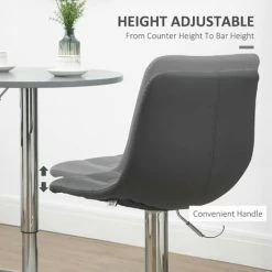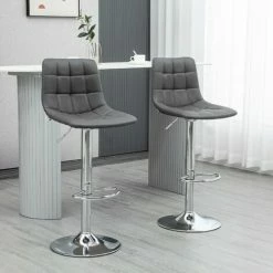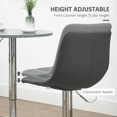 Sit with company, in style: these kitchen stools from HOMCOM. The padded seats and straight backs provide comfort and support. Comes with a steel frame, this adjustable stool has a strong and supportive structure, fitted with a bottom bar to rest legs. The rounded base keeps the bar stool weighted. Adjustable height design to set to the level most suitable for you.
