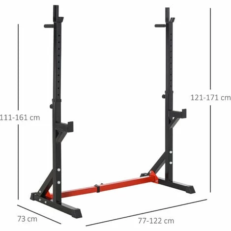 Made from solid steel for supreme strength and reliability, this HOMCOM barbell rack is tough enough to hold up to 150kg, meaning it’ll support your workouts. It can be adjusted to twelve different positions for control. Finished with anti-slip rubber caps on the feet and a ‘J’ hook design on the top bracket to keep the barbell secure.