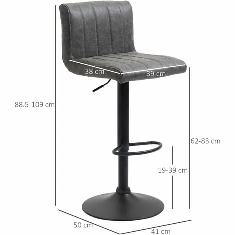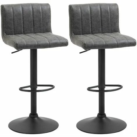 For cool eat-in kitchens and dining rooms, these two HOMCOM bar stools will do the trick. The weathered PU leather upholstery adds instant style, whilst the steel frame ensures full support whilst seated. Seats feature a high back for support, with padding all-over for comfort. Adjustable height to be in level with your worktop/table, each breakfast bar stool comes complete with a large round base for balance.