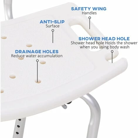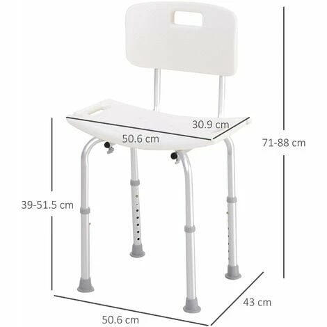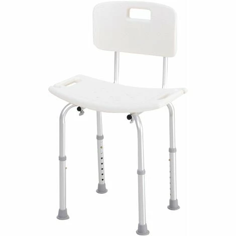 Made for assistance in the shower or bath, this bath chair from HOMCOM is perfect for the elderly or those who need extra help in the bathroom. Made from aluminium, the four legs are resilient to water damage, keeping the chair stable and durable and withstanding up to 136kg in weight. Adjustable in height, this chair helps you find the most comfortable position to sit, with a hard wearing plastic seat with drainage holes to provide years of use. Finished with suction pads on each foot to stop any slipping, it will instantly make life easier in the bathroom.