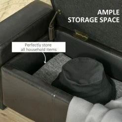 Keep your home tidy and organised with this ottoman storage box from HOMCOM. A simple design, it will bode well in your home and home office, with its sleek PU leather upholstery and its modern boxy shape. Using MDF for the frame to ensure the sturdiness. A flip lip reveals a 20x79cm compartment, which gives you a moderate amount of storage room. This storage ottoman is also equipped with four legs for balance. The perfect way to keep your home decluttered with ease.