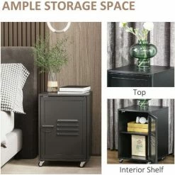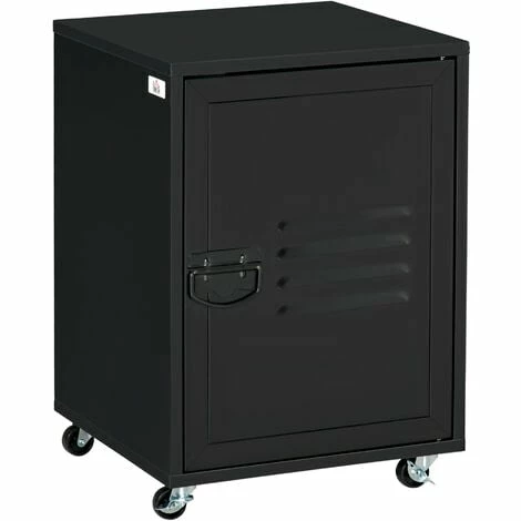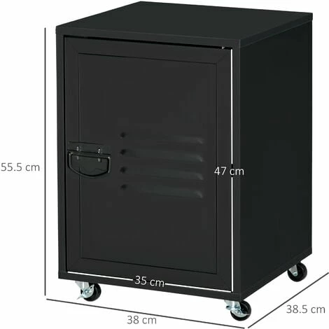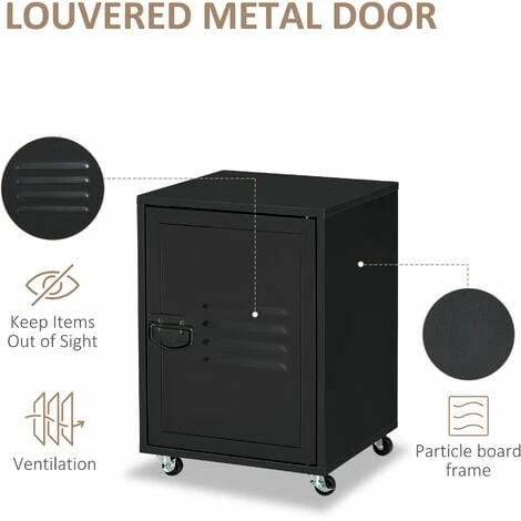 fitted with a metal door to keep inside guarded. Front air vents for freshness inside. Handle on the front to open the door easily. Completed with four wheels to move around easily.