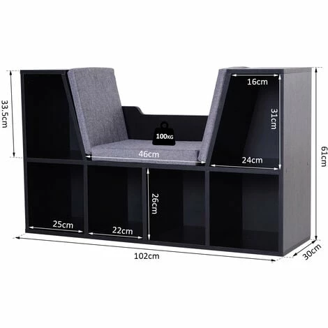 You can now stop the search for the best reading spot at home thanks to this HOMCOM bookcase seat. Made from particle board for strength and reliability over the years, the base is crafted into a design which features six open cubes for handy storage, with a curved cut-out seat and soft padded cushion to allow you to comfortably immerse your head into your book for hours. Sleek black in colour, it will sit in any style room with ease in a unique design.