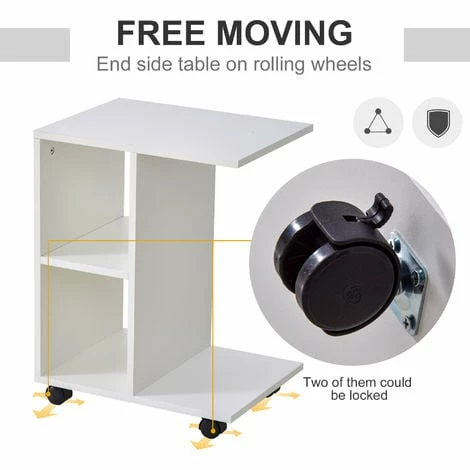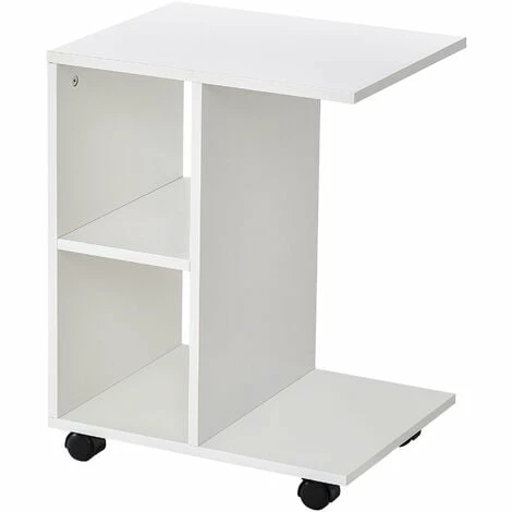 Let the unique design of this ‘C’ table, from HOMOM, lead the way for keeping your home tidy. Made from solid particle board, this piece is very durable and reliable for everyday use, featuring two open shelves for storage and display. The open end can be used as both extra storage and slotting into spots to extend the surface space, with the four wheels allowing it to move easily