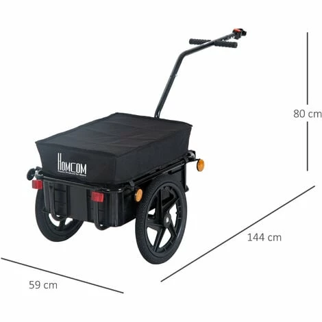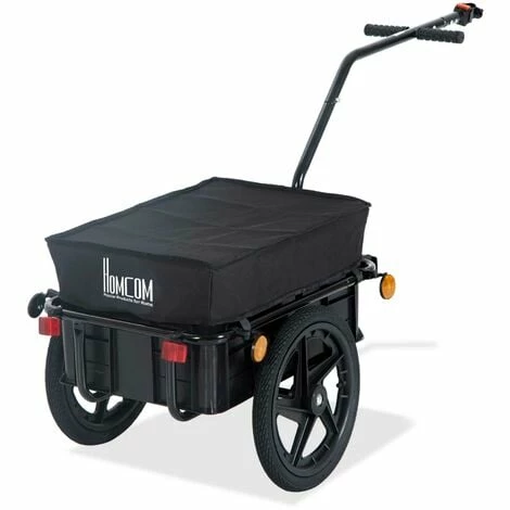 This HOMCOM branded bicycle trailer is a great way to move items around using a bicycle. The trailer is made of a steel construction with a removable storage box and a fabric cover. The trailer has 2 inflatable wheels which makes it more stable and sturdy when moving. This is a great way to transporting goods and comes complete with reflectors for safety.