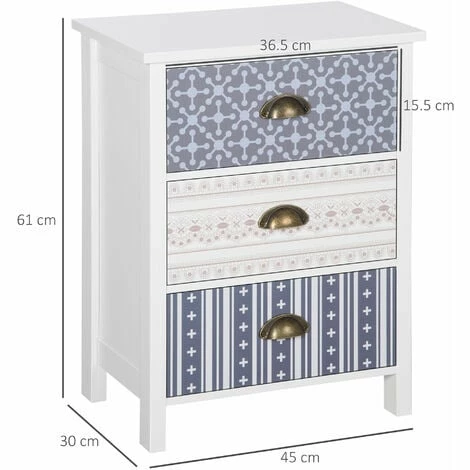 Add character to any area of your home with this three-drawer unit from HOMCOM. It offers plenty of space for storage, keeping your home clean and organised. Made from MDF, this storage cabinet is built to last, suitable for daily use. Whether it’s for the bedroom, the living room, or even the attic, this is the piece to stand proud in place.
