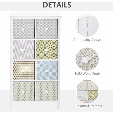 Add unique character and interest to any area of your home with this drawer dresser from HOMCOM. Featuring eight drawers and spacious tabletop, it offers plenty of space for storage to keep your home easily clean and organized. Made from MDF, this cabinet is built to last, ensuring a long-term use. Whether it’s for the bedroom, the living room, or even the attic, this is the piece to stand proud in place.