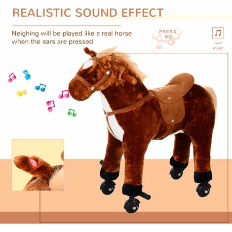•Combines a classic plush horse look with updated interactive features •Makes realistic neighing and galloping sounds when the ears are pressed •Softly padded polyester plush body and comfortable riding saddle •Durable four-wheeled design for endless hours of comfortable rides around the house •Weighs just 14 pounds and supports up to 60kg •Recommended for ages 3 years and up •Batteries are required and included for sounds •NOTE: Please ensure your child meets all size criteria. Because this toy is powered by your child’s physical movement.