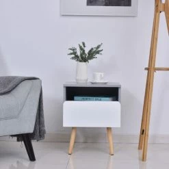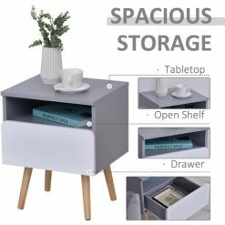 Make a subtle impact in the bedroom with this bedside table from HOMCOM. With its clean-cut shape, and neutral grey and white colourway, this piece is completely effortless and is fit to stand almost anywhere. The frame is made from MDF so it can be relied on for everyday use, and it’s fitted with pine wood pegs which keep the structure balanced and stable. It features one large drawer for discreet storage and an open compartment and table top for on-show display. A must-have bedroom essential done in the most stylish way possible.
