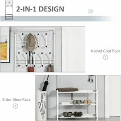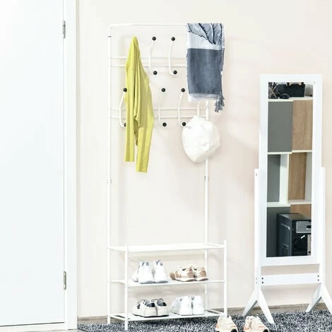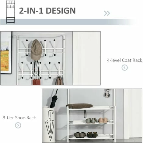 Keep your coats, outerwear, bags, and shoes well organized with our modern coat rack stand from HOMCOM. This garment rack with 18 hooks for hanging your coat and a 3-tier shoe rack for placing shoes. Crafted from a robust steel frame, it is durable in use. Buy it and you’ll never misplace anything again!