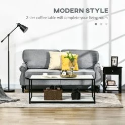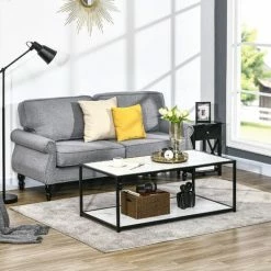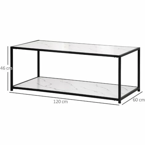 Compliment your home with this HOMCOM coffee table with storage, which has a marble faux design for a decorative touch. There’s a tabletop and a bottom shelf, so you can place your flowers, coffee and ornaments on the top, whilst using the bottom for books, magazines and other household items, keeping your home tidy and clutter-free. Made with a strong steel frame, the top can hold up to 30kg – whatever is placed there, will be secure. This modern coffee table will bring your room to life.