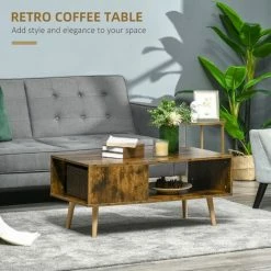 Two-tone style comes with handy storage, thanks to this HOMCOM accent table. Front shelf and side shelf for keeping all your coffee table essentials together, with a flat table top for extra holding and display room. Made from particle board, with solid wood legs, this is a durable and sturdy piece.