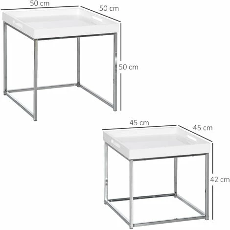 Nesting tables done the unique way, thanks to these two tables from HOMCOM. Each piece comes with a tray-design table top
