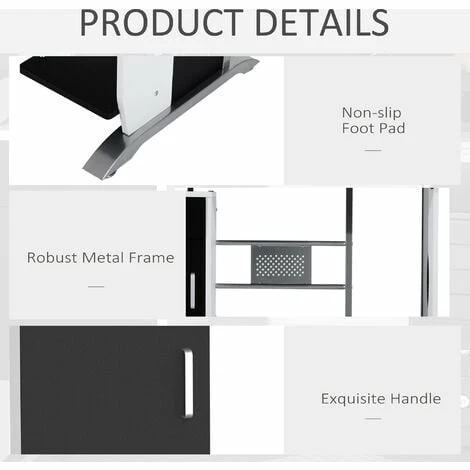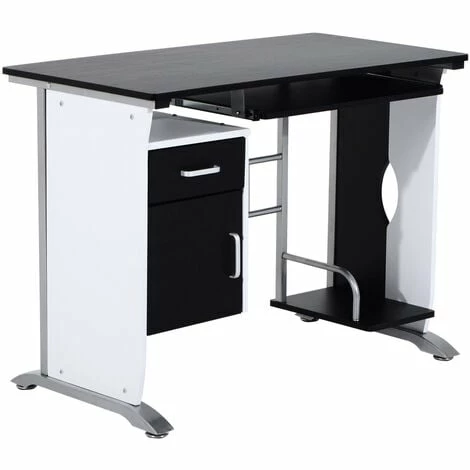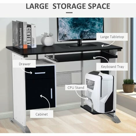 This stylish computer desk is constructed using high quality steel and MDF. It has a compact design to use the smallest amount of space, so great for small rooms. Comes with a sliding tray for your keyboard and a large convenient workspace for your monitor and any other items for daily work. There is a small drawer and cabinet to keep your stationary or any personal belongings. Comes complete with anti-slip feet to make your desk more stable and secure. This desk can be used for both home and office environment.