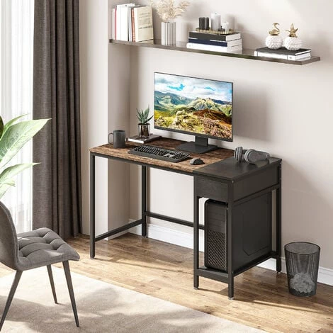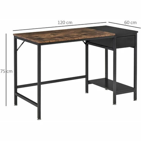 Bring life back into your workspace with this desk from HOMCOM. With a large table area, a CPU stand, and a drawer, giving you plenty of room for books, folders, stationery, etc. This tasteful, industrial-style computer desk unifies rigid steel with spliced two-color particleboard, resulting in a unique display of delicate charm. An easy way to get your space and work area organized efficiently.