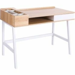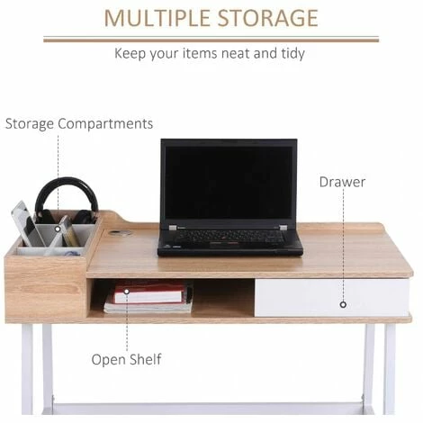 The multi-purpose computer desk from HOMCOM comes with a 6-compartment side storage, a lower open compartment and a pull out drawer. It is designed for organisations and keep items neat and tidy, giving you ample space to hold book, magazines, documents, electronic gadgets and much more. Protective padded feet prevent the floor from scratches and they’re height adjustable to fit all types of floor surfaces for enhanced stability. Contemporary design with MDF desktop and metal frame in oak and white colour. This desk is both stylish and functional for your study space, and can be used as a laptop workstation, writing desk and much more, ideal for any home and decor.