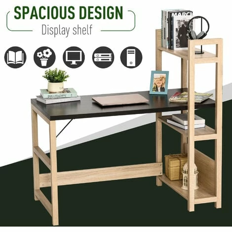 Let this desk from HOMCOM take the hard work off your schedule this season. It’s a duo design which gives you space to work and keep everything organised together in one stylish spot: fusing a work desk with side shelves. Built from particle board, the solid construction secures a reliable place to work on, with a smooth melamine coating to protect against light marks and damage. Fitted on the right side, the three spacious shelves give you lots of holding and display room for everything you need close by – whether it be folders, books and other office essentials. It’s finished with anti-slip feet for floor protection and reinforced accents on the frame for extra strength.