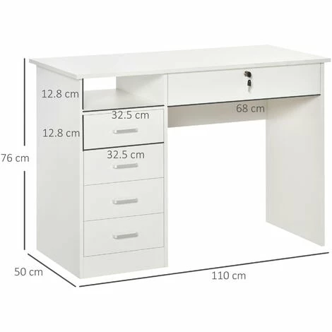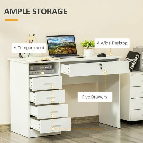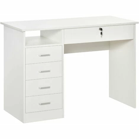 Require space to work and keep all office supplies organised? Then go for this HOMCOM computer desk with drawers. Comes with a wide table top and under-desk space to work from, shelf and five drawers. The below-desk drawer can be locked for security