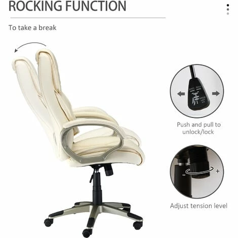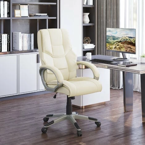 Take the stylish approach to your work, with full backing from HOMCOM executive office chair. The faux leather upholstery, paired with the large size and supportive back, creates a strong, stylish look you’ll love having in your space. The ergonomic chair features a swivel seat, fixed armrests, a tall back, and a thick padded keeping you supported and comfortable – perfect for all-day working. Our comfy chair is complete with five wheels to move around easily.
