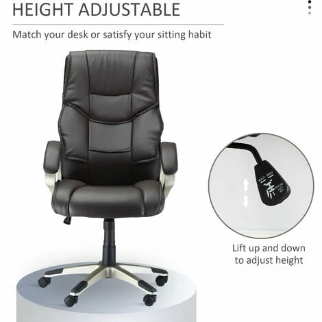 Take the stylish approach to your work, with full backing from HOMCOM executive office chair. The faux leather upholstery, paired with the large size and supportive back, creates a strong, stylish look you’ll love having in your space. The ergonomic chair features a swivel seat, fixed armrests, a tall back, and a thick padded keeping you supported and comfortable – perfect for all-day working. Our comfy chair is complete with five wheels to move around easily.