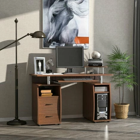 • Features large worktop, a side drawer, side computer unit holder and small top shelf