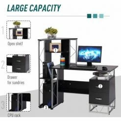 This computer workstation in an Oak finish is a great design for home and office use. It features 2 drawers, and multi-level shelving system built-in. A great furniture to have your computer equipment and accessories on.
