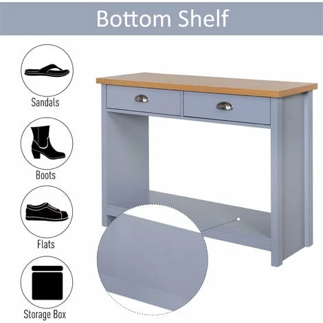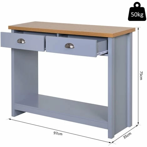 Adding extra storage into your home has never looked so stylish, thanks to this hallway table from HOMCOM. Formed from durable MDF for reliability, it is crafted into a 75 x 97cm design, featuring two top drawers to provide room to store what you need. Two smooth and polished handles for a sophisticated glisten and a large open shelf below – perfect for keeping shoes and bags neatly stored and within easy reach. This console table with storage is perfect for minimising everyday clutter.