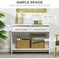 With this beautiful console table, you can bring Contemporary chic in to your living space. Our hallway table has an extra large desk to display pictures, knick knacks and much more the open shelf underneath allowing you to place storage boxes, plus, you can use the drawers to store matching items out of sight. Adopt up-to-date chic in your living room, your bedroom, your entrance with this console table with shelf and drawer.