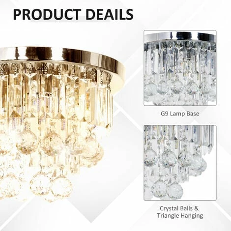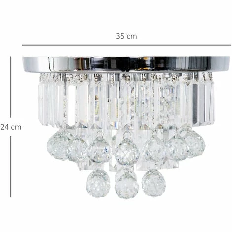 Add some elegance to your home with this HOMCOM crystal ceiling light. This dynamic lighting element features generous rows of cascading 100% crystal to catch the light. Cascading crystal reflects light beams in a manner that makes it appear as if it has multiple light sources. The unique design makes it an eye-catching piece that works for most rooms. Dress up your entryway, your dining room with the classic fixture.
