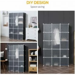 Organise and store your clothes with this innovative DIY wardrobe from HOMCOM. Made from sturdy and hard wearing plastic, it is made into a customisable design – two large cubes and nine smaller cubes that can be set up in any way you wish, simply by connecting the modular units together, making it ideal for fitting into any size and shape space hassle-free. With a steel frame within each cube, the wardrobe is able to stay up against a maximum weight of 30kg. Easy to assemble and disassemble, you’ll have no problem getting this up in time and taking it down too.