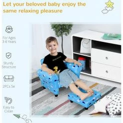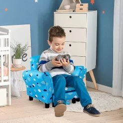 Bring colour and comfort to your child’s playroom or space with this mini armchair from HOMCOM. A wood frame for a solid structure to hold up to 45kg, with soft padding to ensure they can sit and rest comfortably, with a pull-out footrest giving them extra relaxation space. Cute cloud upholstery in blue and white is smooth to the touch, and can be wiped clean easily. A high back and armrests allow support, with non-slip legs to finish. Recommended for children ages between 3-6 years.
