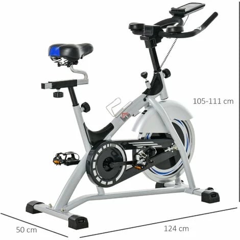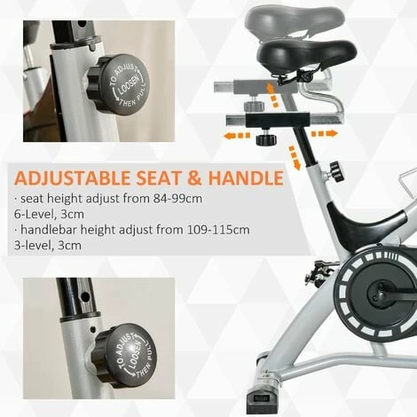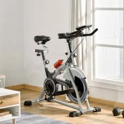 Take you to a new fitness level with this stationary bike from HOMCOM. The fitness bike comes with a seven-position moving seat and handlebars, so it’s easy to find a slot best for you. The seat is padded for comfort, and the pedals feature toe caps to hold your feet as you work out. The resistance is adjustable with the tension knob, with the 15kg flywheel ensuring it ridings smoothly and stably. Our exercise bikes for home use finished with a monitor to track your fitness as you move.