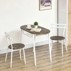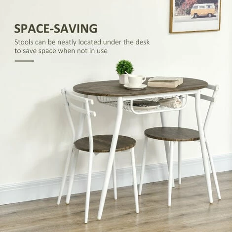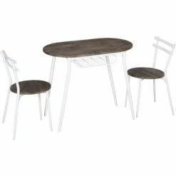Turn a small space into an inviting dining room – this HOMCOM three-piece kitchen table and chairs set. The dining set includes an oval table, with curved edges for a relaxed impression in a room. The shelf in the base of the table creates extra storage space. Tuck the chairs, hide the clutters underneath when not needed – perfect for the smaller home and kitchen spots.