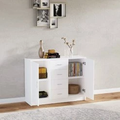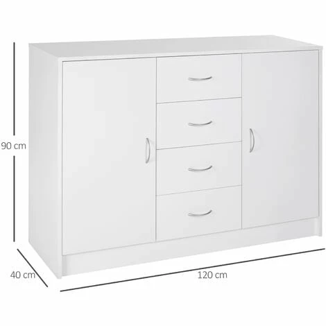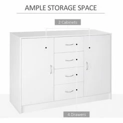 Featuring a simple but elegant appearance, this HOMCOM storage cabinet offers you ample storage space and helps you organize your things easily. With a wide countertop, 2 cabinets and 4 drawers, you can classify your things with ease. This side cabinet also serves as an entryway console, coffee bar and sideboard. This storage sideboard is worth your considering.