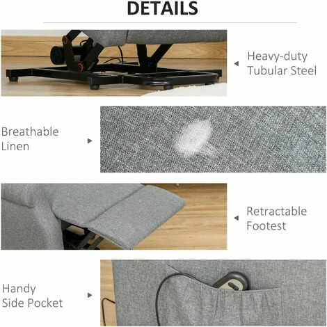 Bring assistance into your life whilst keeping your independence with this electric lift-up armchair from HOMCOM. Built with a solid wood and steel frame for strong, reliable support for a weight up to 200kg. Controlled by the attached remote, the chair lifts up vertically in a gentle and steady manner to provide support. Wrapped in linen for easy maintenance and breathability for your skin.