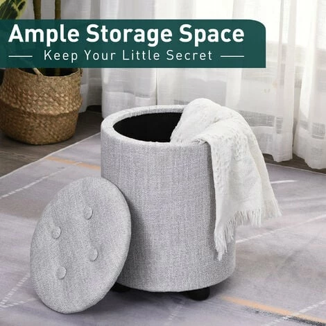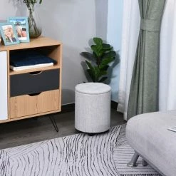 Bring simple sophistication which guarantees a tidy area into you home, thanks to this light storage stool from HOMCOM. Its storage size measures 25X24cm, which is a good size for keeping your sewing kit, magazines, books and remotes in, concealed by the lift-off lid. Its tough frame keeps the shape, and also allows it to be sat on, with soft padding on the lid for comfort. It’s wrapped in linen, meaning it is smooth to the touch, elegant and easy to clean, and it’s finished with button tufting on the lid and four large feet to keep the balance.