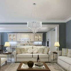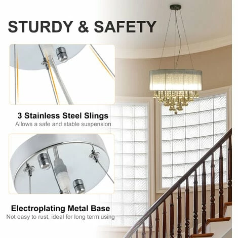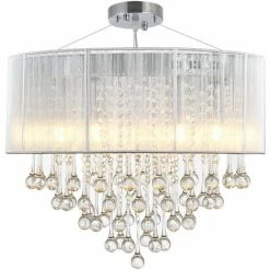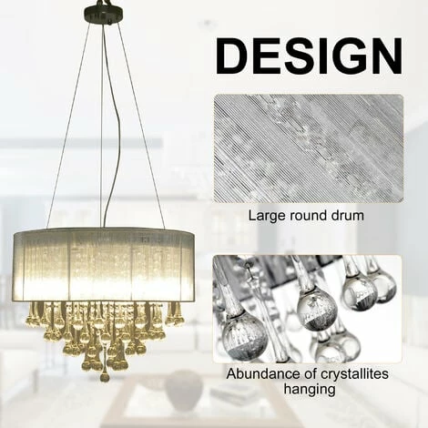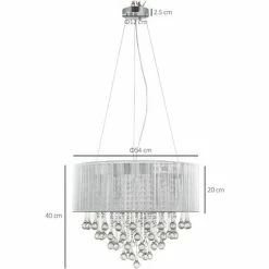 Bring a touch of glitz and glamour into your humble abode with this crystallite ceiling light from HOMCOM. It features a large drum shade, semi-transparent in finish to allow the light to shine through, with an array of glass crystallites hanging together in-between the shade. The texture and transparency of the glass allows the light to shine through and create a fragmented effect in the night time. The polished metal top is sleek and tough. The perfect way to bring some sparkle into your life.