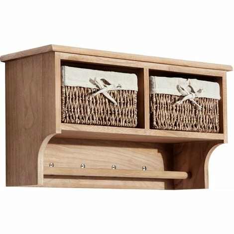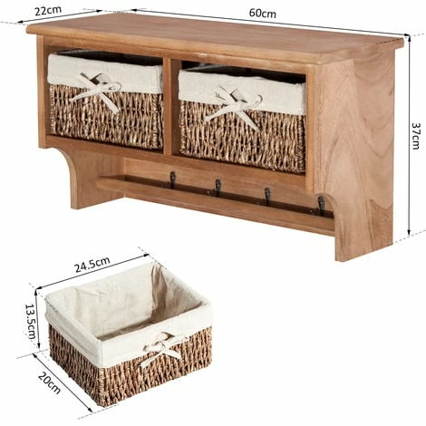This HOMCOM wall mounted storage shelf is a great item to have in your entry or hallway for your home or office. It comes in a modern design with four metal hooks to hang your coats and two cube shelves with two pullout wicker baskets. These will be a great place to store your gloves, scarves bags and more. The unit gives you ample storage and will be an ideal solution to match your home or office décor.