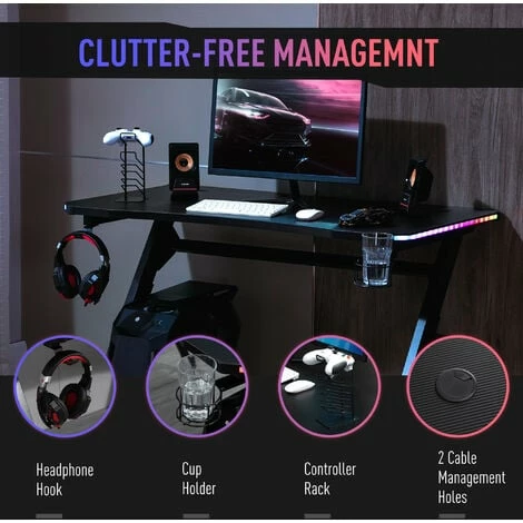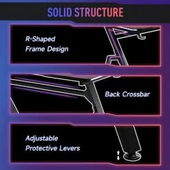 High-performance gaming needs a high-performance gaming desk. Come with spacious desktop, stable powder-coated steel frame, built-in RGB LED lighting, and versatile storage solution, this gaming desk provides everything you need for high-performance gaming. Ergonomically contoured edges and attached protective levers enhance the comfort of long hours of play in your gaming office.