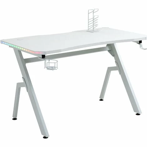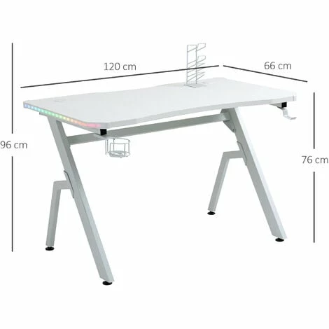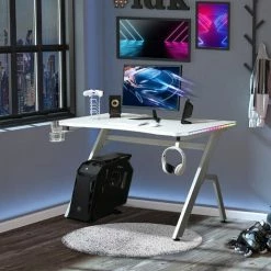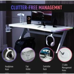 High-performance gaming needs a high-performance gaming desk. Come with spacious desktop, stable powder-coated steel frame, built-in RGB LED lighting, and versatile storage solution, this gaming desk provides everything you need for high-performance gaming. Ergonomically contoured edges and attached protective levers enhance the comfort of long hours of play in your gaming office.