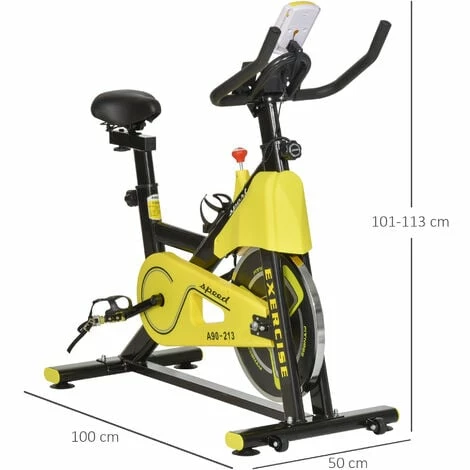 Improve your fitness and start achieving your goals at home with this HOMCOM stationary bike. Its upright design stands steady, with the two wheels allowing it to be moved easily for storage. The slim cycle features a resistance knob, so you can adjust the intensity to suit you. The LCD displays the time, speed, distance, and calories burnt, keeping you on track as you work out. Using heavy-duty steel with a belt-driven system and 6 kg flywheel, this fitness bike keeps stable and balanced when in use. A fun way to work out your upper and lower body, getting your body moving around.