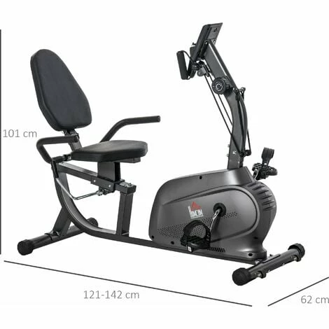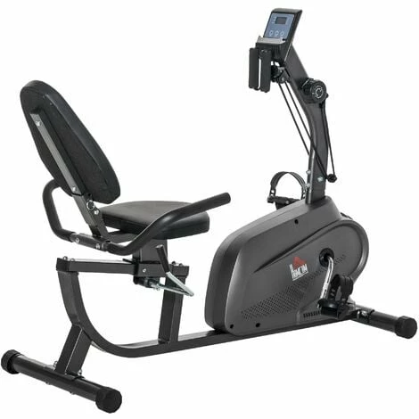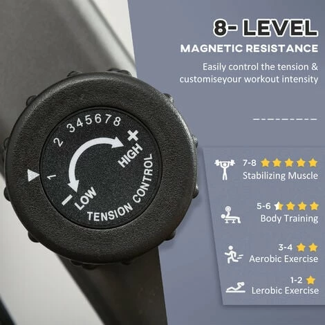 Exercise anywhere, even with no electricity around, thanks to this HOMCOM stationary fitness bike. Fitted with an LCD monitor, you can keep track of the time elapsed, speed, calories and distance achieved. The seat is adjustable and there are eight different resistance levels for a work out which is completely catered to you. A durable steel frame, this home bike trainer can support up to 110kg.