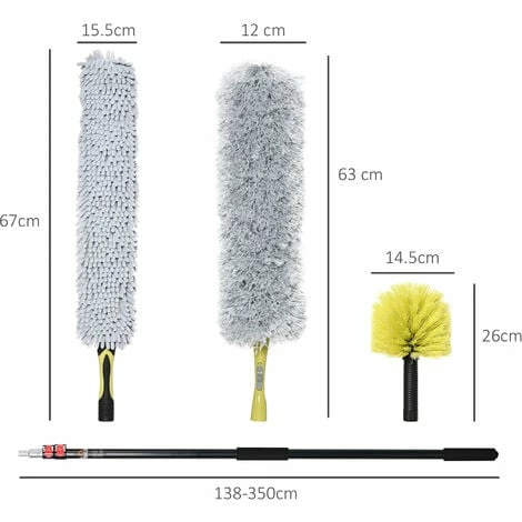 ● Includes a cobweb duster, microfibre feather duster and ceiling fan duster