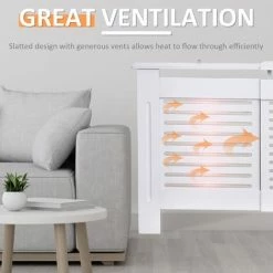 This modern and contemporary styled radiator cover from HOMCOM is a great way to enhance the look of any room. Most radiators are unsightly and this can add a touch of elegance. Made from white painted MDF, it is ready to be assembled and installed without the need to add any finishing touches. It is also a great way to keep your children and pet safe from touching the hot radiator surface and causing injuries. You can adjust its length easily to suit your radiator size.The slatted design allows airflow efficiently without restricting the heat to be radiated to the room. This is an elegant and practical addition to any home and office.